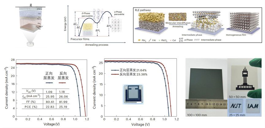 近日,南京工业大学柔性电子(未来技术)学院、柔性电子全国重点实验室黄维院士团队在全真空热蒸发钙钛矿光伏器件的研究中取得重大突破,相关成果以“Fully thermally evaporated perovskite solar cells based on reverse layer-by-layer deposition”为题发表在《自然·光子学》(Nature Photonics)上。博士生徐雨田为论文第一作者,通讯作者为黄维院士、陈永华教授、夏英东教授和郭庆勋副教授。