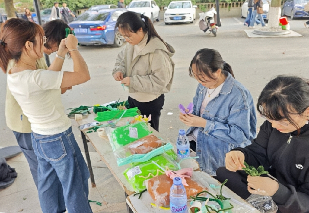 本次活动创新心理疏导模式,将手工创作与心理疗愈深度融合,以扭扭棒DIY盆栽为载体,传递积极心理理念。活动现场,学院心协志愿者备齐丰富的创作材料,细致讲解制作技巧,引导同学们充分发挥创意、释放自我。同学们专注投入创作,用柔软可塑的扭扭棒打造出各具特色的专属盆栽。扭扭棒的可塑性寓意情绪的灵活疏导,盆栽的生机象征心灵的向阳生长,在潜移默化中引导同学们接纳情绪、保持乐观心态。参与的同学纷纷表示,动手创作的过程能有效舒缓压力,在沉浸式体验中实现了心灵的放松与滋养。