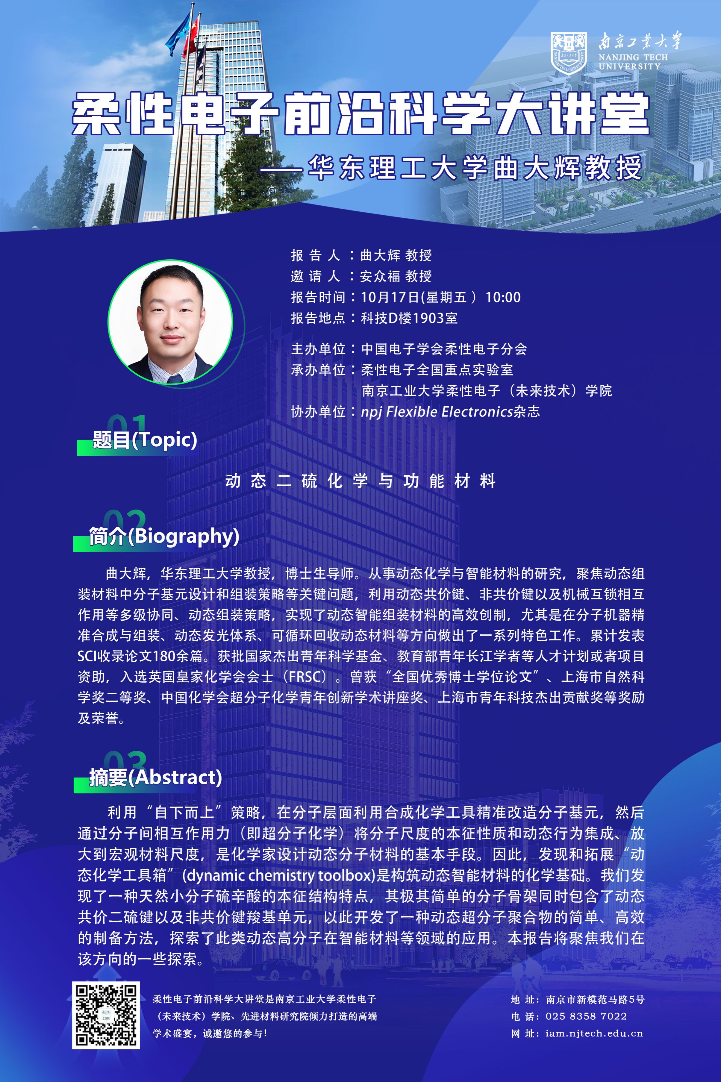 【柔性电子前沿科学大讲堂】第39期:华东理工大学曲大辉教授