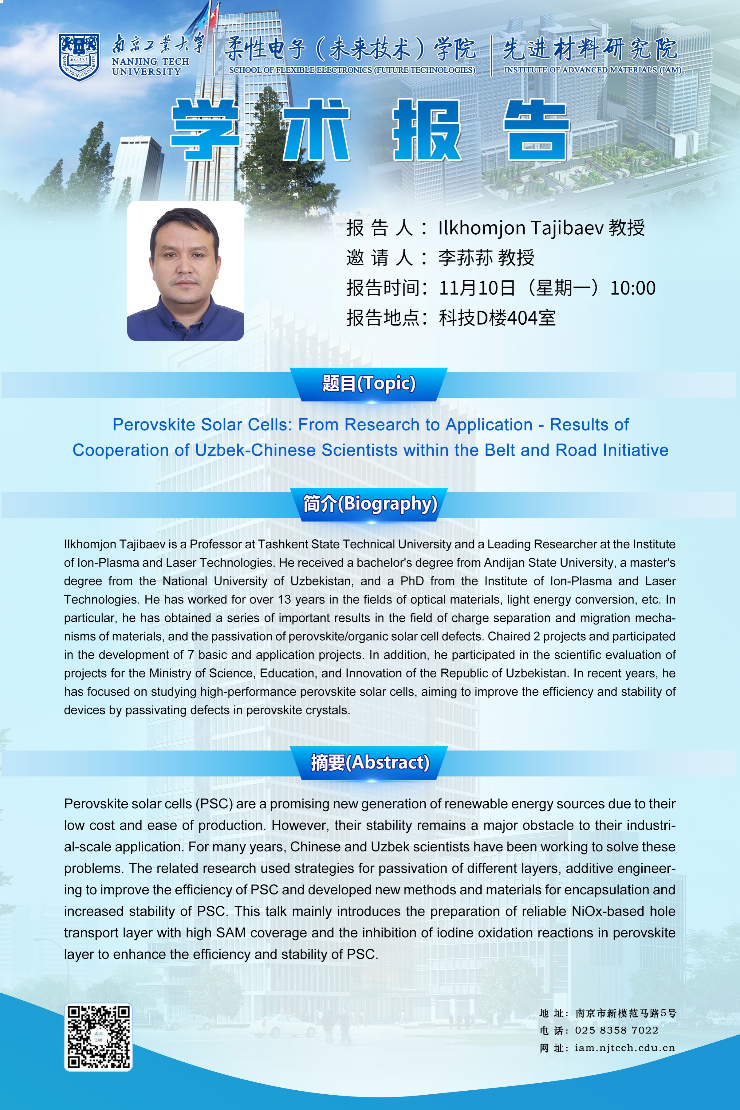 关于乌兹别克斯坦Ilkhomjon Tajibaev教授学术报告的通知