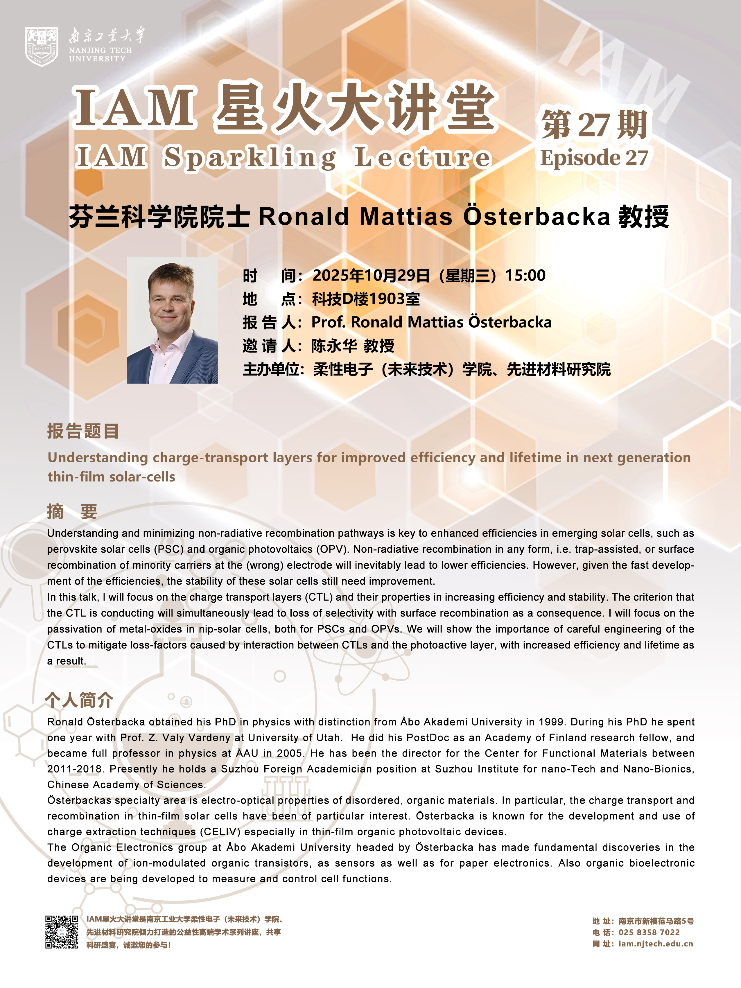 IAM星火大讲堂第27期:芬兰科学院院士Ronald Mattias Österbacka教授