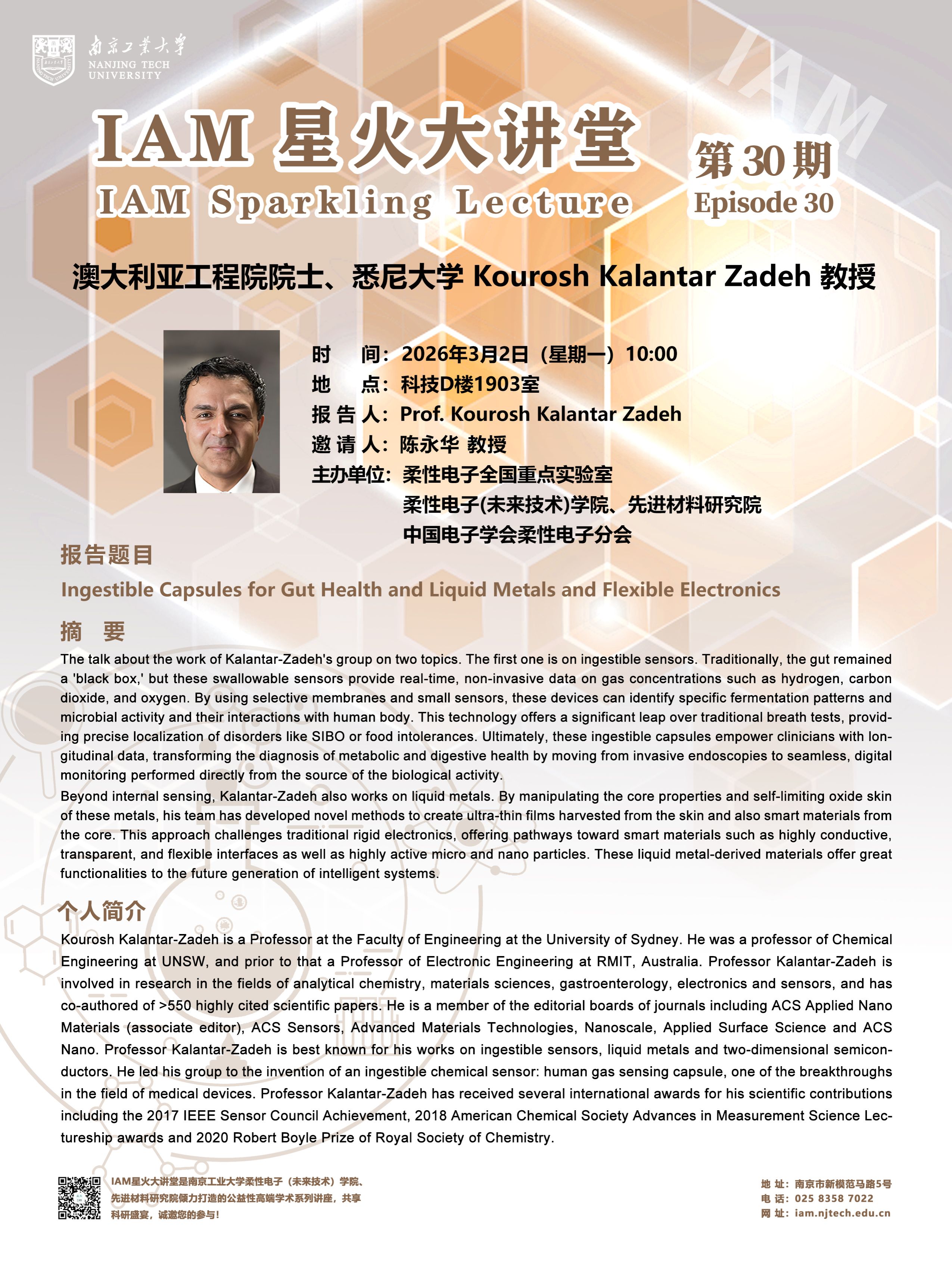 IAM星火大讲堂第30期:澳大利亚工程院院士、悉尼大学Kourosh Kalantar Zadeh教授